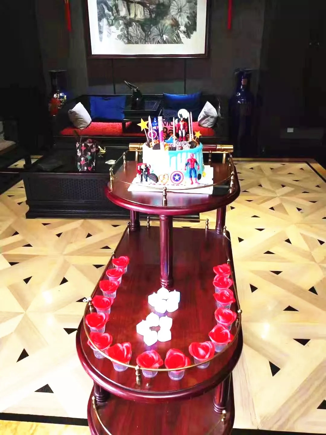 到了11点左右,有位客人把蛋糕提前送了过来,我们把蛋糕放在蛋糕车上,又用LED小灯围成了一个大的心形,加上一些玫瑰花瓣,把蛋糕车装扮一新。到了11点半,客人都到齐了。我们提前与客人沟通了细节,并得到了他们的认可。生日宴正式开始,于总监主持了开场,我们伴随着生日快乐的歌曲为小朋友送上了祝福,把小朋友请到蛋糕前许愿,现场气氛很热闹,大家都很开心。***后到结账时,客人对我们表示感谢,并表示以后生日都会选择宴天下,这里的服务不一般!