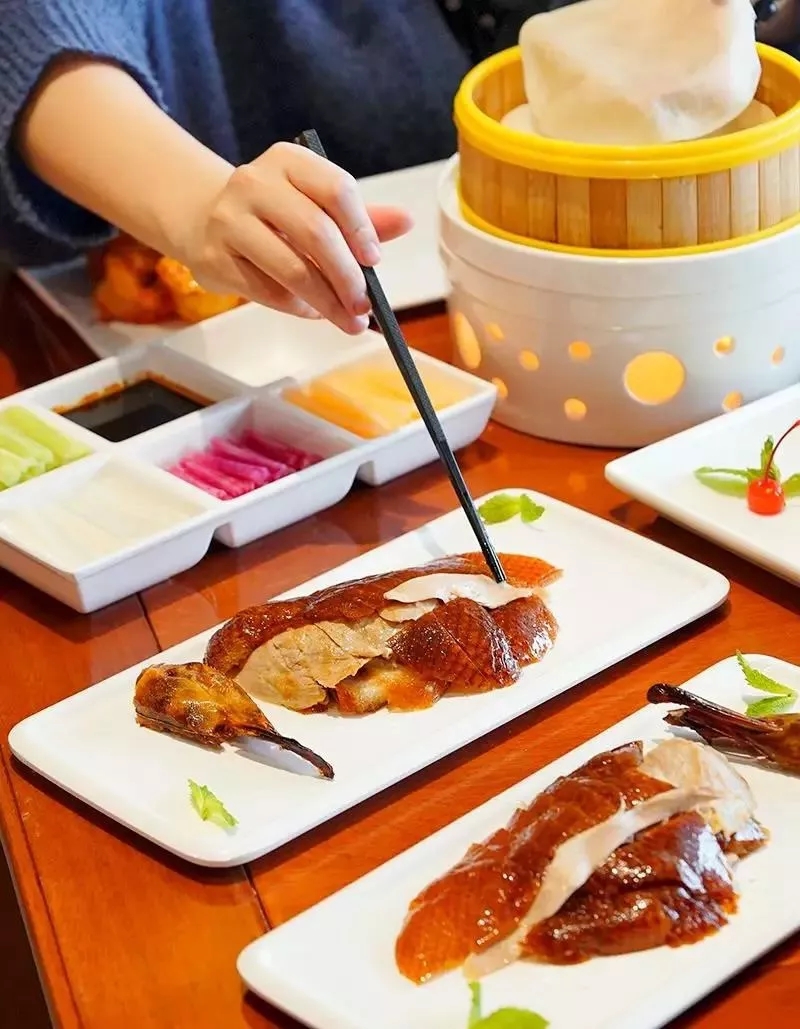 单吃鸭子会略油且口味稍淡,只有配上荷叶饼与之共食,才能吃出一只鸭子的内在灵魂。